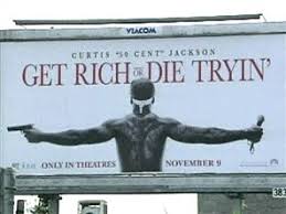 More recently there was this poster for 50 Cent's first film "Get Rich or Die Trying" in L.A. which had to be taken down because it was "Disturbing".